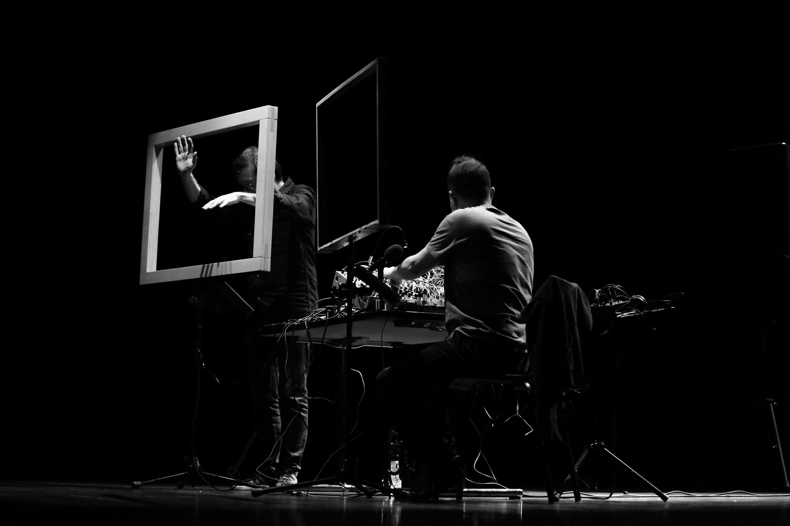 Patience et ingéniosité, voilà ce qui caractérise cette rencontre entre deux expérimentateurs hors pair. Le percussionniste franco-vietnamien Lê Quan Ninh a une formation musicale classique ; il s’intéresse aux compositions contemporaines, à l’improvisation non idiomatique ainsi qu’à la danse, à l’art vidéo et aux arts visuels. Son jeu fait souvent appel à des techniques étendues qui font sonner le tambour comme un instrument à cordes ou un synthétiseur. Au fil de décennies de pratique, il a acquis un feeling extraordinaire, allié à la précision et à l’imagination. Mathieu Chamagne est à l’origine un pianiste qui s’est progressivement tourné vers la musique électroacoustique et l’art sonore, en mettant l’accent sur la création de nouveaux dispositifs interactifs et d’environnements numériques. Dans ce duo, il joue de son propre instrument/installation, Apertures, qui ressemble à des cadres de fenêtres et convertit les mouvements des mains en sons. En sonnant ensemble, les deux instruments, apparemment si différents, commencent à converger sur le plan sonore et finissent par fusionner. (Alternativa Festival, Prague, 2024)